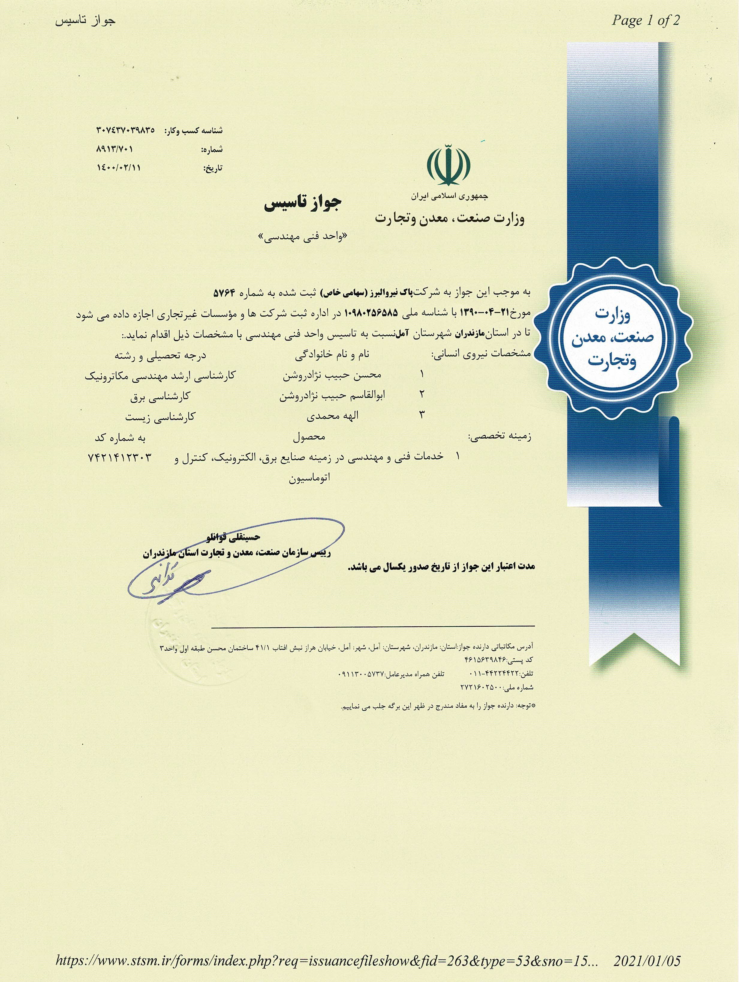 جواز تاسیس واحد فنی مهندسی